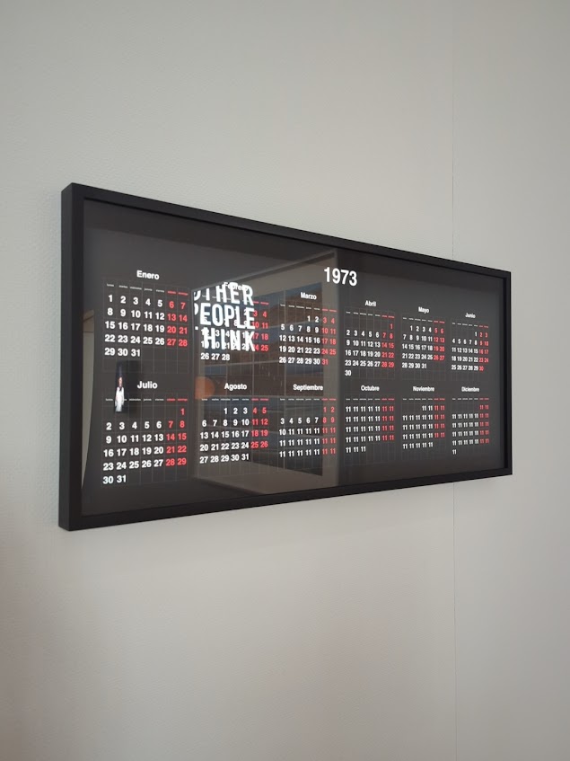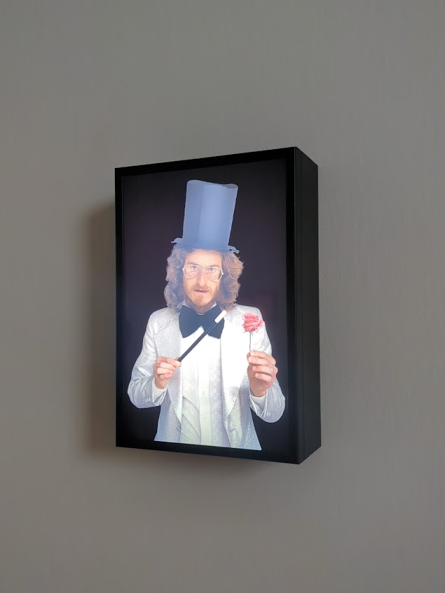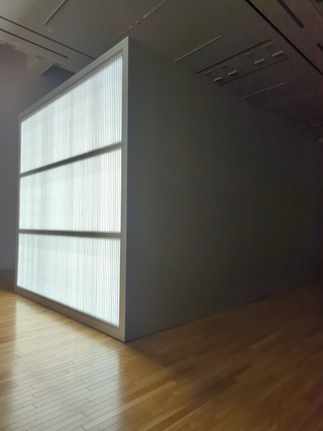 黒いライトボックスに白い文字が浮かぶ作品です。