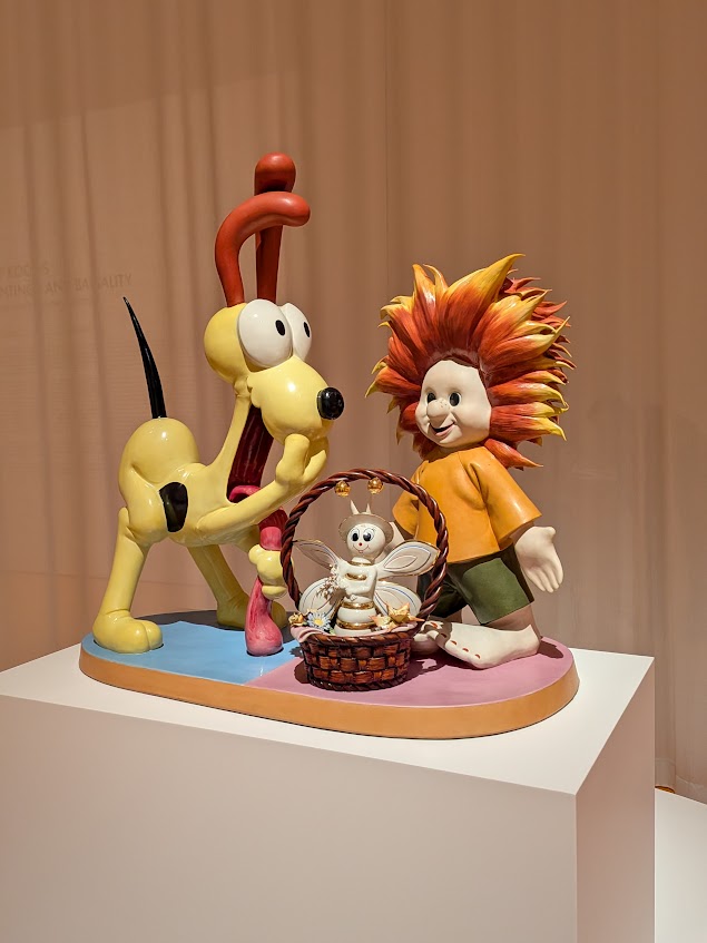 家庭用品や広告、子どもっぽい図像、美術史の引用をわざと混ぜて、「高級なアート」と「大衆文化」の境目がどこなのかを考えさせるような展示でした。