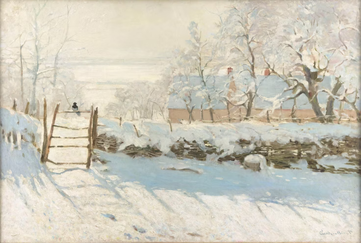雪は白いはずなのに、モネは白だけで雪を描きません。