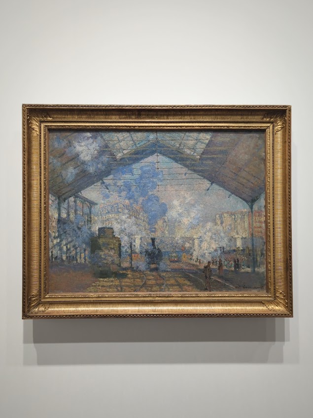 この駅の連作はモネにとって現代的な使命を示す重要な仕事でしたが、建物の線よりも、蒸気や煙が光を受けて広がる空気の絵として見ると面白いです。