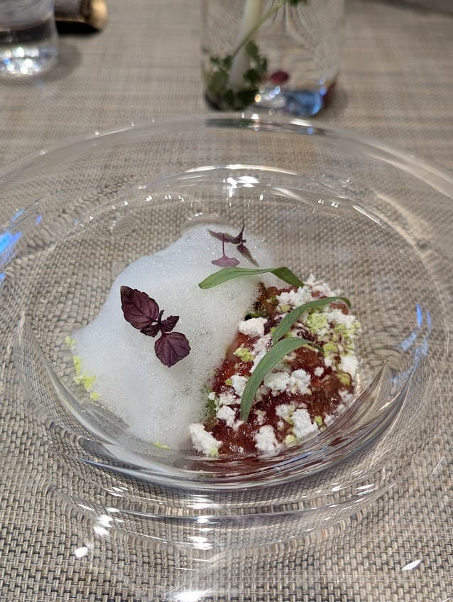 ジュレと泡の下にごろっとした和牛と野菜が隠れています。