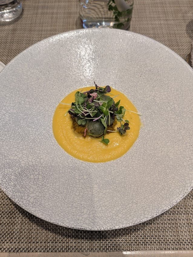 こちらもパスタ&リゾットから選べる「よもぎの玄米ニョッキ かぼちゃのポタージュ仕立て」です。