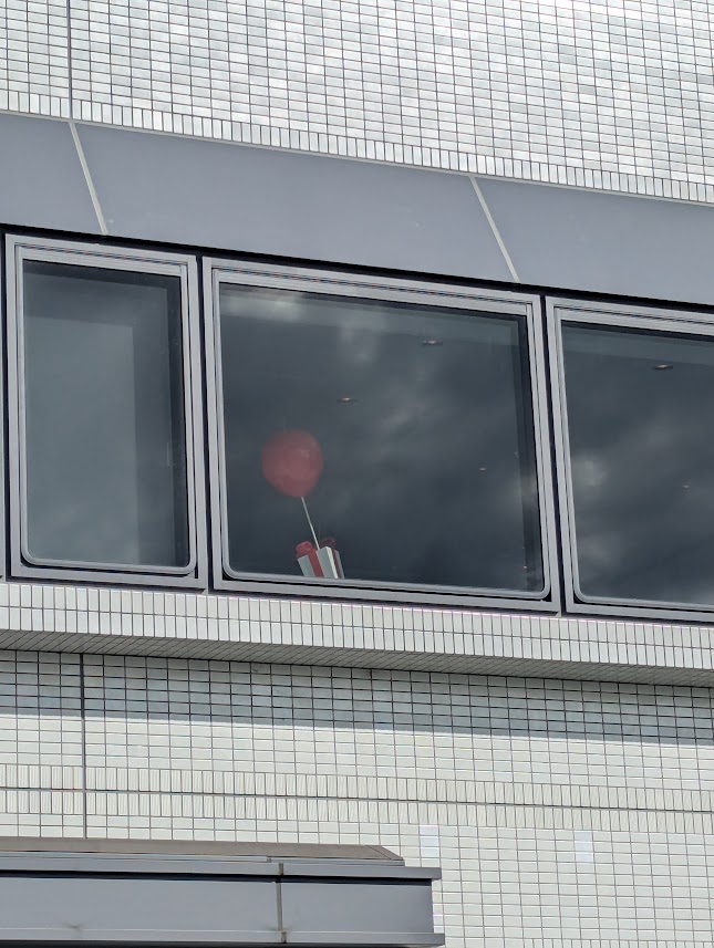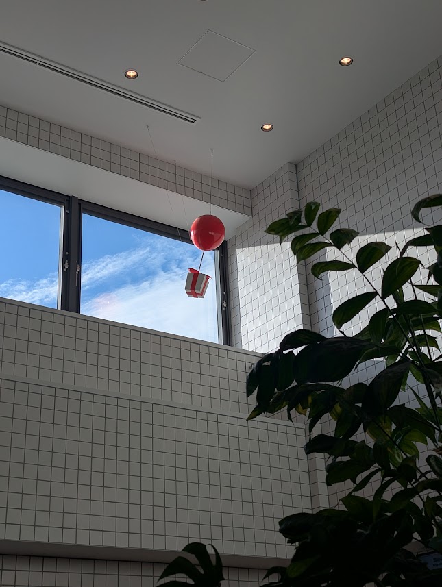 天井付近にどうぶつの森のプレゼント風船が飛んでいました。かわいい〜!!