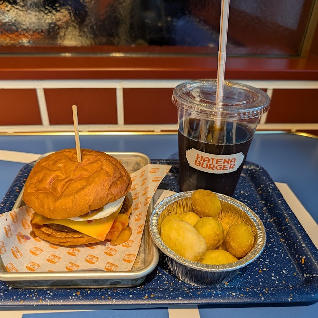 カフェ「はてなバーガー」があります。オリジナルハンバーガーをつくることができます。