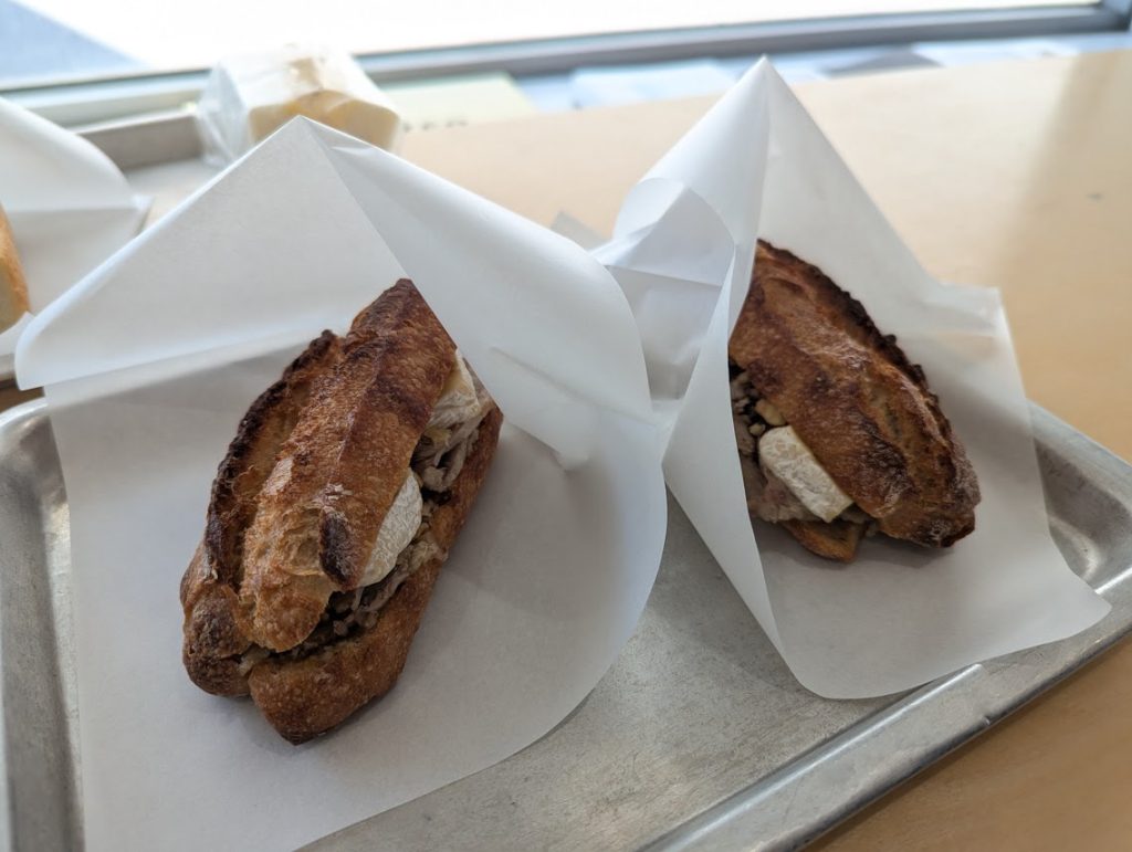 カマンベールチーズとバルサミコソースのローストポークサンドイッチ。温めるサンドは温めてくれます。具がいっぱいでおいしかった。