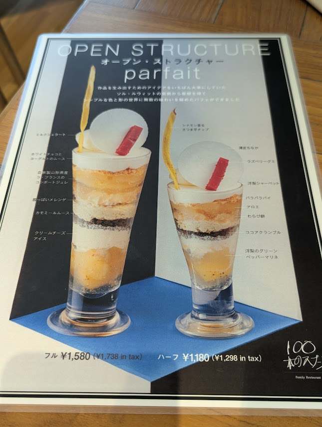 ソル・ルウィット展コラボパフェのハーフサイズを注文。これが本当においしくて可愛くて大満足!ヨーグルト系で全体的にさっぱりしていて最高。