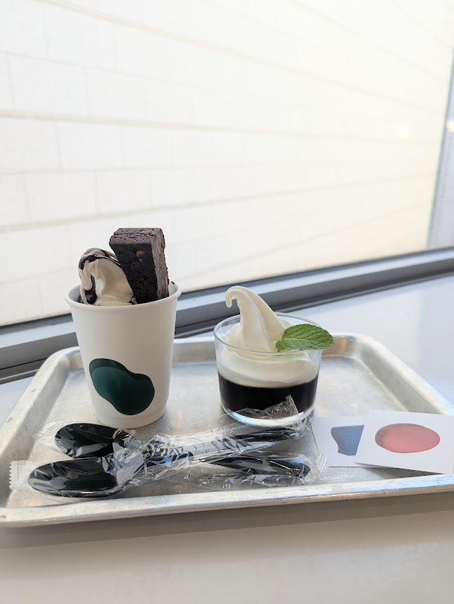 私が食べたブラウニーの突き刺さったソフトクリームもとても美味しかったです。全部ソフトクリームかと思いきや下はコーンフレークやパフがザクザク入っています。