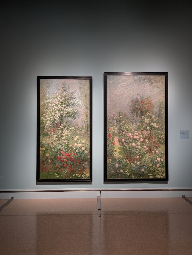 私邸の大広間を飾るために依頼された装飾画のひとつで、広い庭を歩き回る七面鳥の群れを、低い目線から大きく描いています。外の明るい光や動きのある筆づかいは、モネならでは。居間にいながら外の風を感じられるような、“室内に自然を連れてくる”発想の作品です。