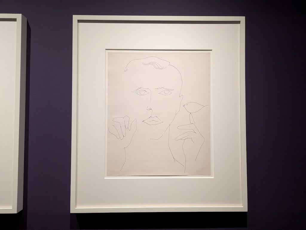 50年代にボールペンで描いた若い男性のドローイングは、広告イラストレーター時代の確かな描写力と、私的なスケッチの伸びやかさを伝えます。