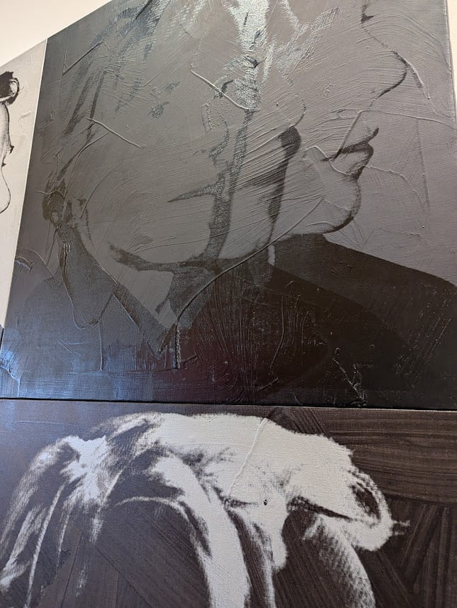 ウォーホルが肖像から輪郭と影だけを抽出して、イメージの反復と変奏へ踏み込んだ例です。