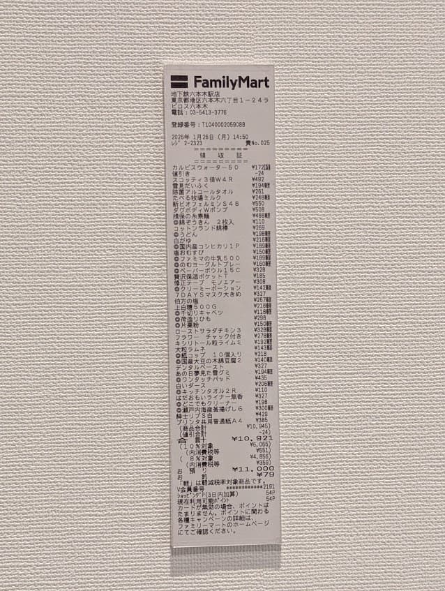 今回の展示でも、作家の指示に基づいて六本木のコンビニで同じ行為を行い、そこで発行されたレシートを展示しています。